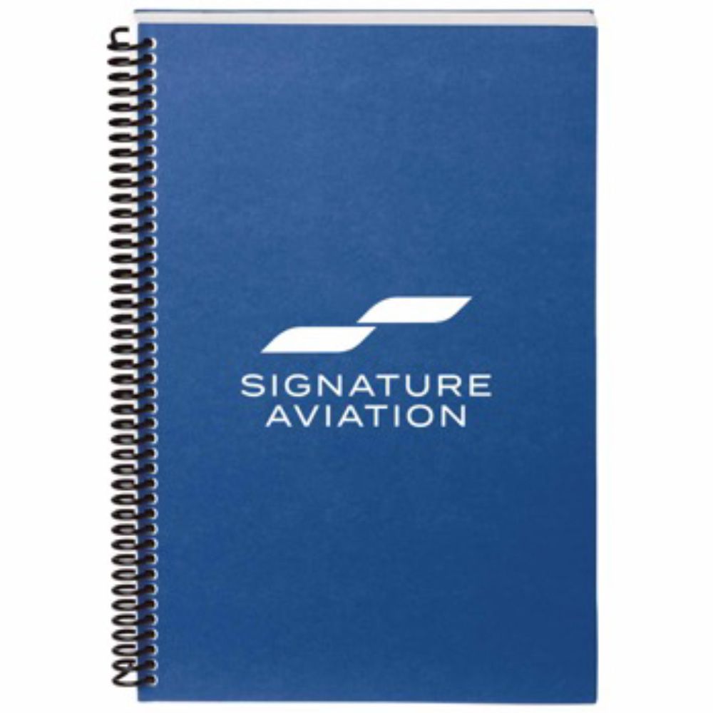 ECO notebook with black spiral binding, 13 pt soft cover, and 144 ivory lined pages. Notebook pages and covers are colored with organic, soy-based inks and are made in Canada with 100% recycled materials. The journal's inner page dimension is 6" x 9".