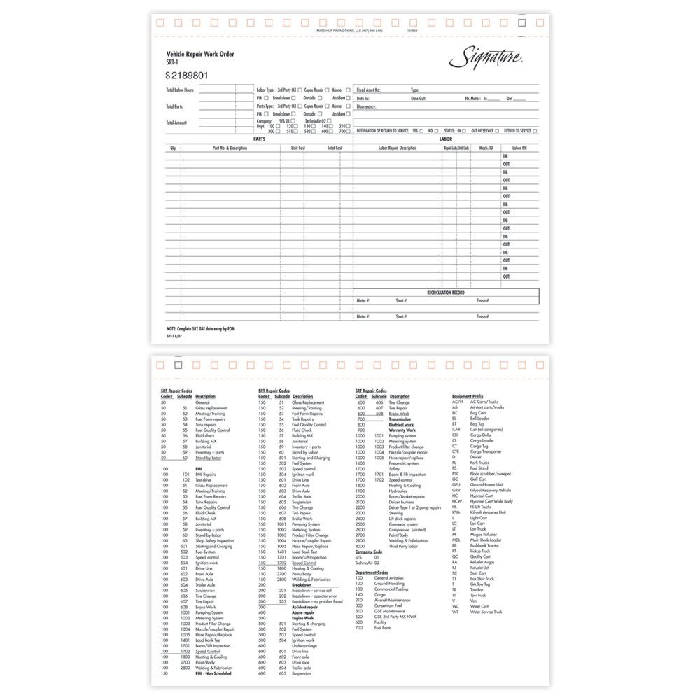 (Formerly SIGSRT-1) Repair Work Order, 3-Part, 1/1 Black Ink, Numbering – Black Crash, Numbering prefix will be in Black not red. There is a minimum order of 25 Work Orders.